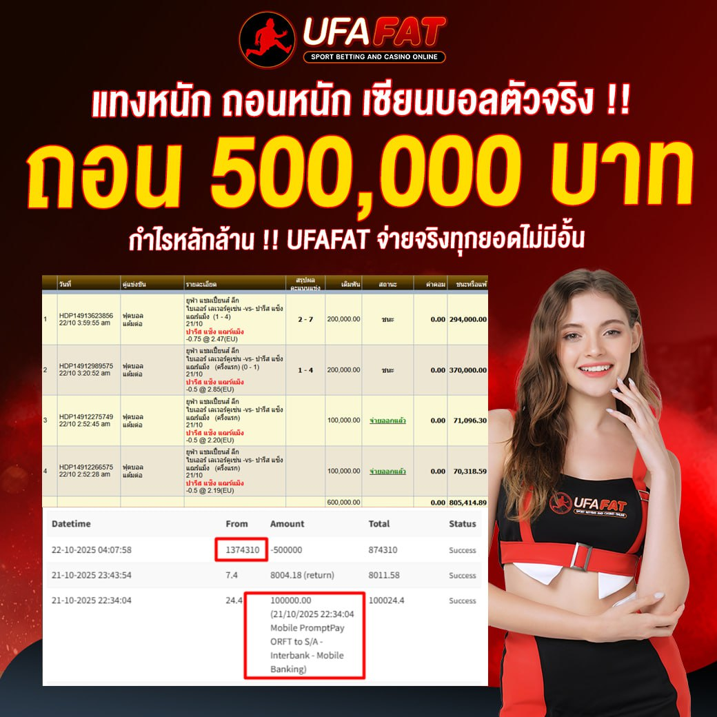 ปัญหาเรื่องการถอนเงินช้า หรือถอนไม่ได้ จะหมดไปเมื่อคุณตัดสินใจมาร่วมสนุกกับเรา คำว่า โอนไวได้จริง ไม่ใช่แค่คำโฆษณาชวนเชื่อ แต่เป็นพันธกิจหลักที่เราปฏิบัติมาโดยตลอด ด้วยรากฐานทาง การเงินมั่นคง ที่เราสั่งสมมาอย่างยาวนาน ทำให้เรามีสภาพคล่องสูงมากพอที่จะรองรับยอดถอนหลักแสนหรือหลักล้านได้แบบสบายๆ ไม่ว่าคุณจะดวงดีแจ็คพอตแตกหนักแค่ไหน เราก็พร้อมโอนให้ทันทีโดยไม่มีเงื่อนไขจุกจิกกวนใจ สมาชิกหลายคนต่างประทับใจในความรวดเร็วและความซื่อตรงของเรา ทำให้มีการบอกต่อและชักชวนเพื่อนฝูงเข้ามาเล่นกันอย่างไม่ขาดสาย การเลือกใช้บริการที่ ufafat คือหลักประกันว่าเงินทุกบาททุกสตางค์ของคุณจะปลอดภัยและสามารถเบิกออกมาใช้ได้จริงเมื่อคุณต้องการ เราเข้าใจดีว่าความสุขของนักเดิมพันคือตอนที่เงินเข้าบัญชี เราจึงไม่เคยทำให้ใครผิดหวัง เตรียมบัญชีธนาคารของคุณให้พร้อมรับทรัพย์ก้อนโต จ่ายครบทุกบาท แบบไม่มีหักเปอร์เซ็นต์ ให้คุณใช้เงินอย่างสบายใจ